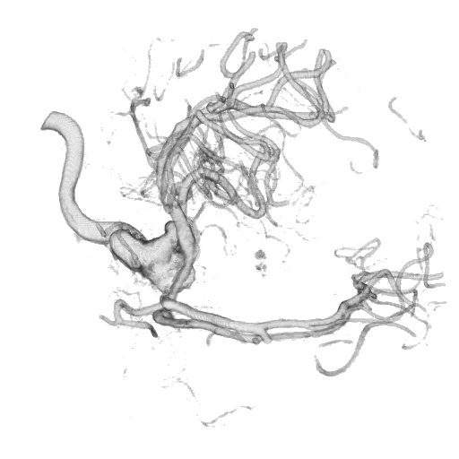The image on the right was generated using a ray tracing algorithm executing in the fragment shader that traces rays through the voxel grid. The data in this case correspond to the measured absorbance. That is, each subcube of the voxel grid has an absorbance in the range 0 ≤ a ≤ 255. Transfer functions are used to map values in the given range to renderable properties such as translucency and color.