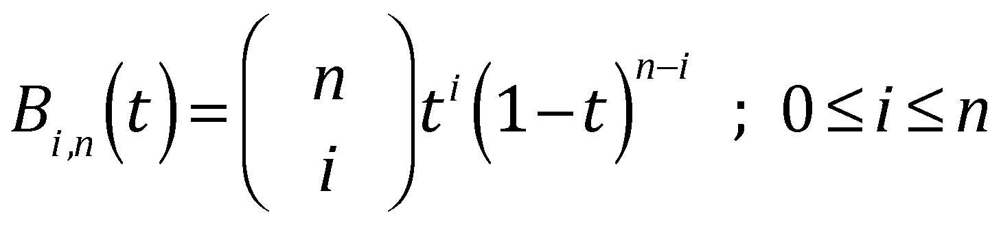 Note also the fact that on the interval 0 ≤ t ≤ 1, all of the Bi, n(t) are non-negative. Hence, the summation defining C(t) is a convex combination on this interval. Recall that any point, Q, formed as a convex combination of a set of points, Pi, will lie inside the convex hull of the Pi. This means the entire curve on 0 ≤ t ≤ 1 will lie inside the convex hull of the Pi, a property that also contributes to this form being particularly well-suited for interactive shape design.